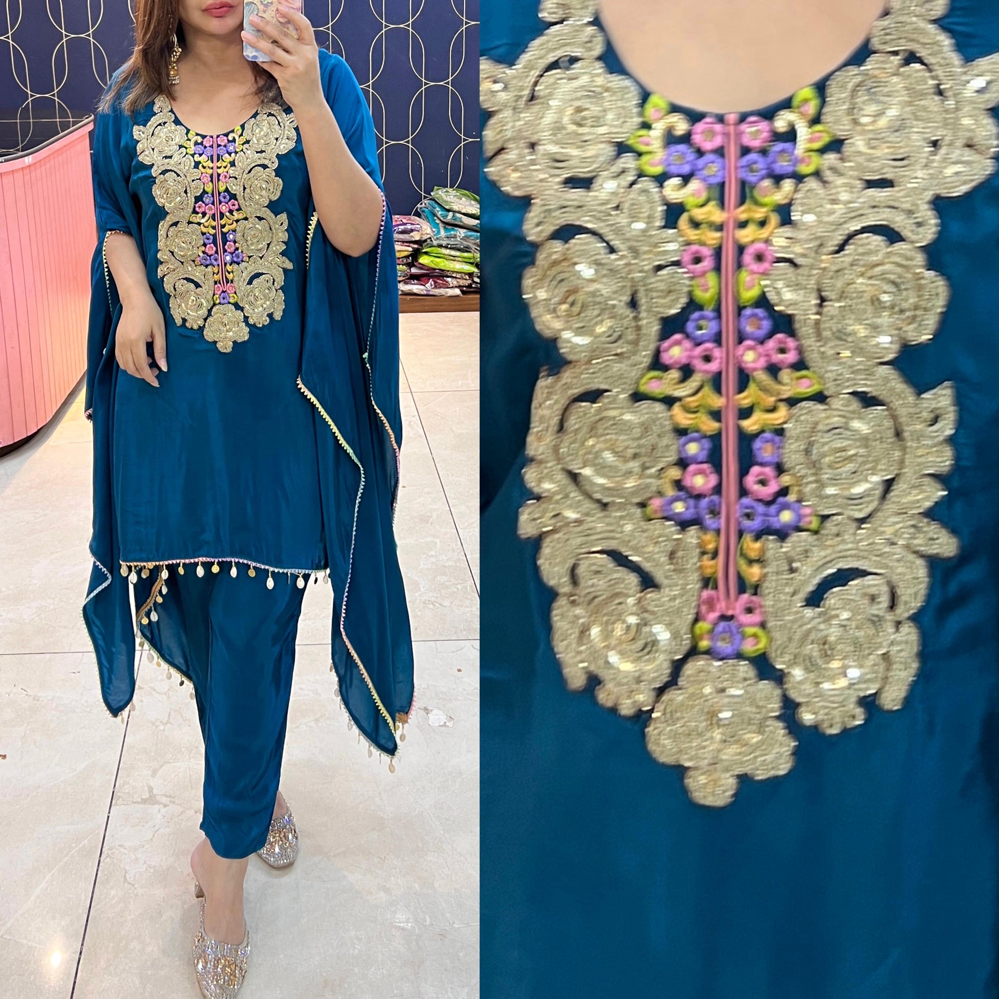 Pure crepe Kaftaan highlighted with beautiful embroidery