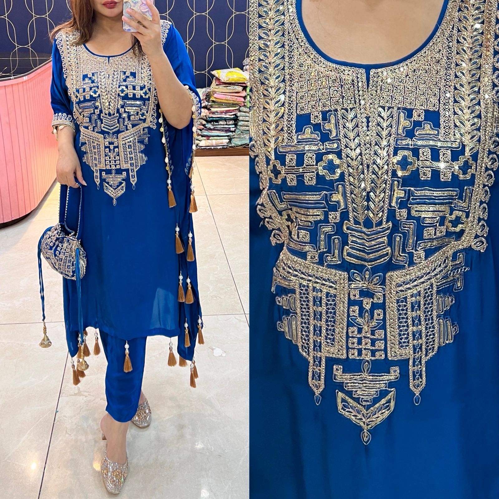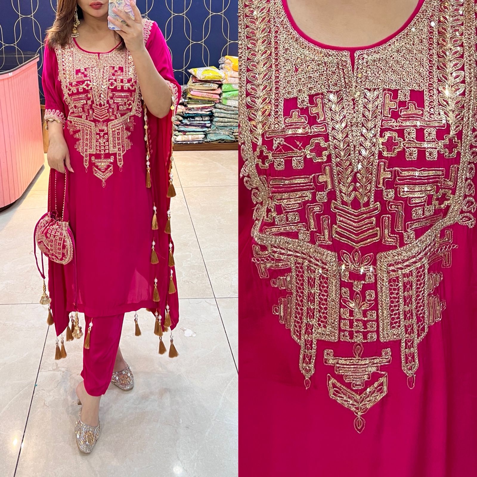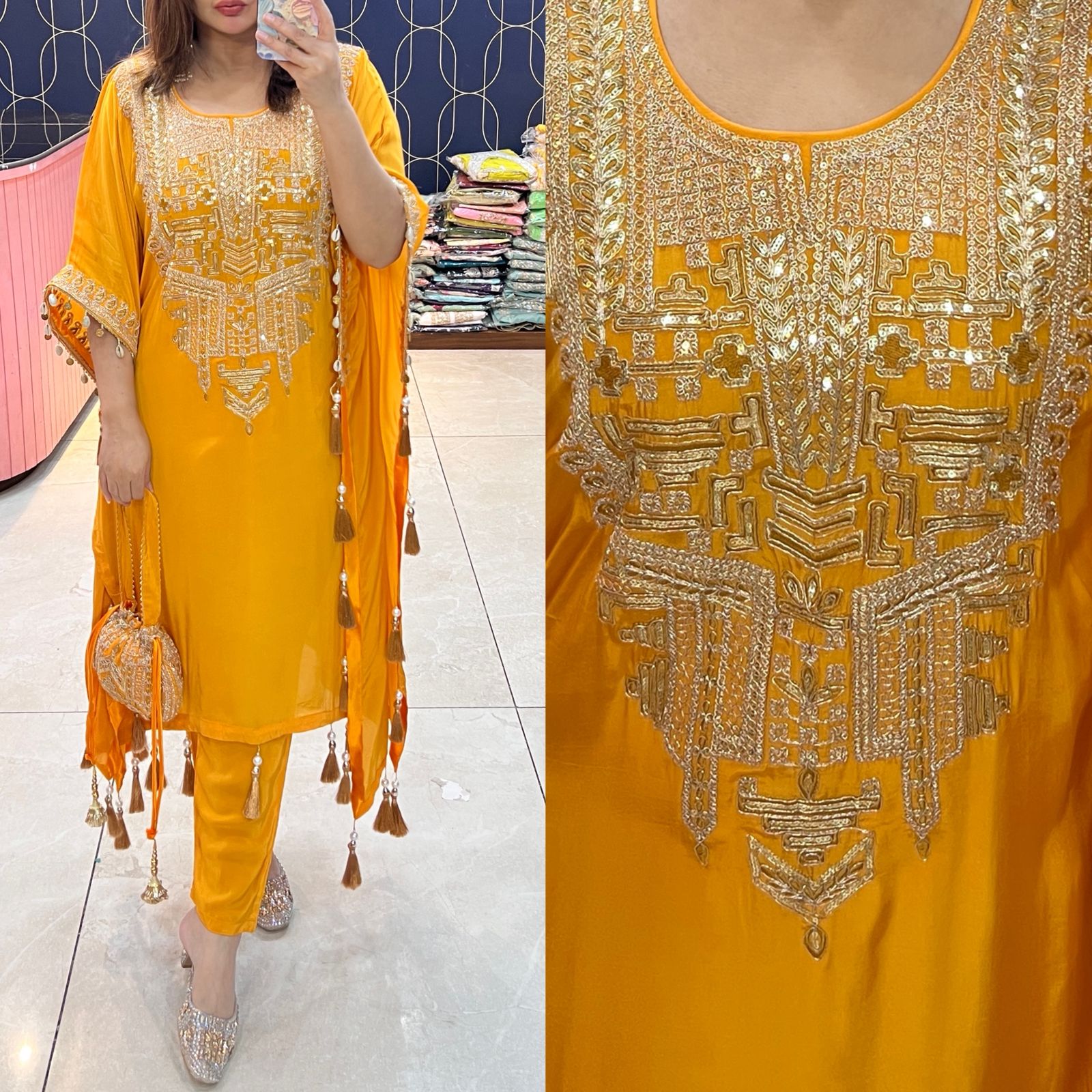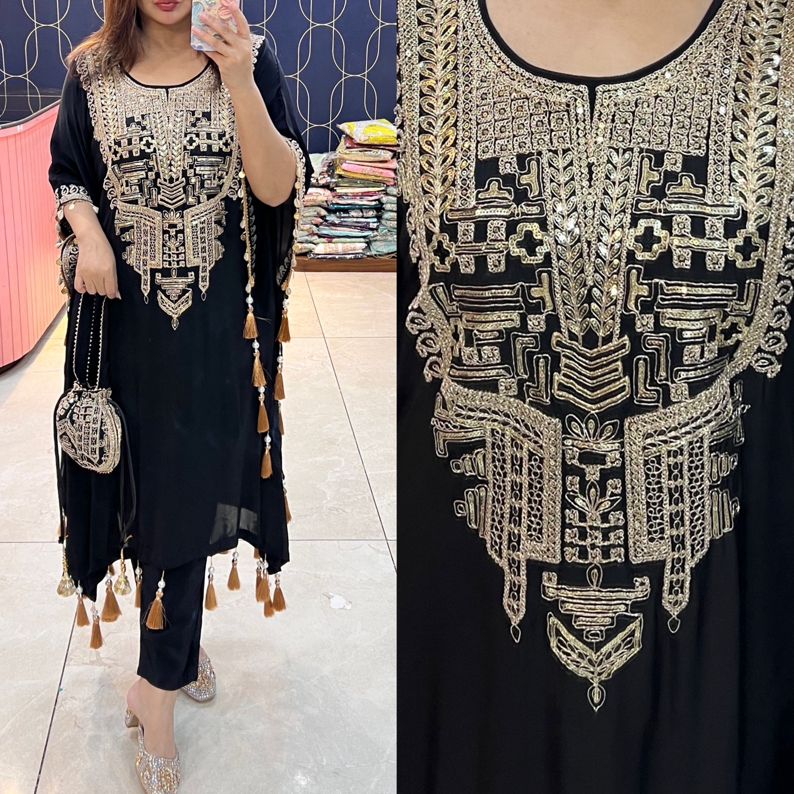 Pure crepe Kaftaan with potli