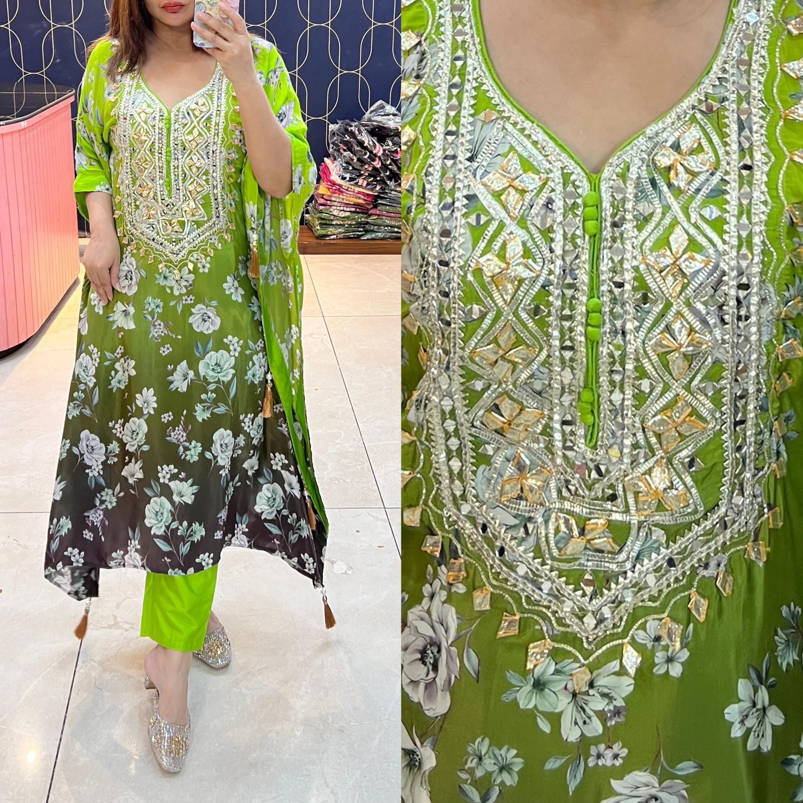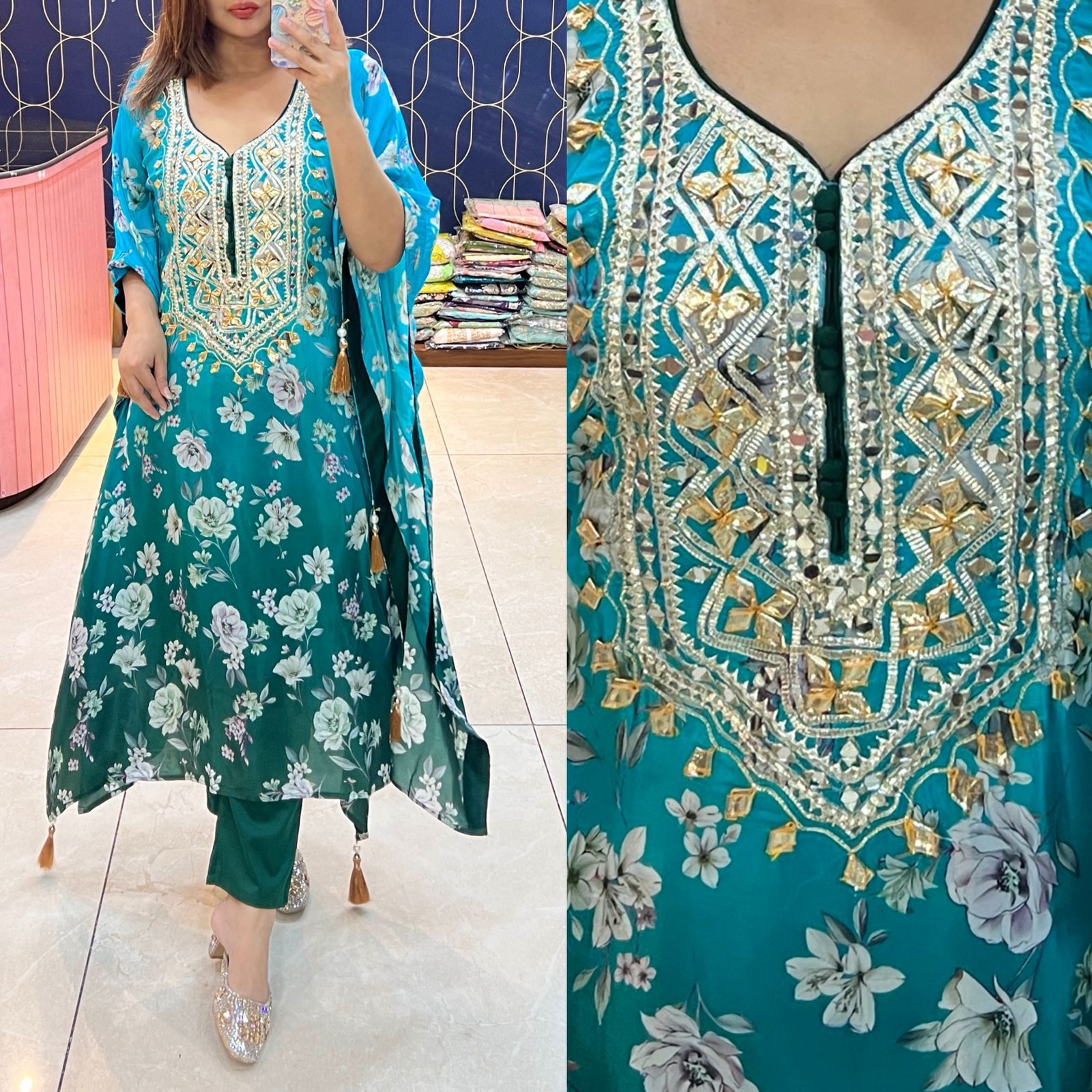 Pure Crepe Printed Kaftaan with Gotapati work